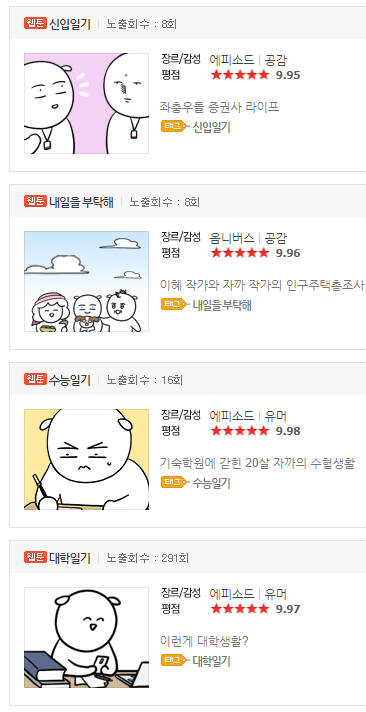 네이버 웹툰 일상 장르 추천