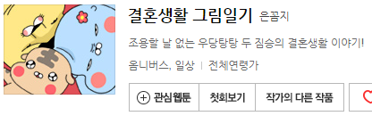 결혼한 부부의 귀엽고 알콩달콩... 하면서도 재미난 일상툰입니다.