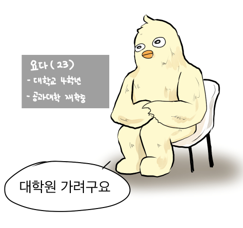 주인공 요다(작가님)는 대학원을 가게 되고 거기서 일어나는 일상 이야기를 다루는 웹툰입니다.