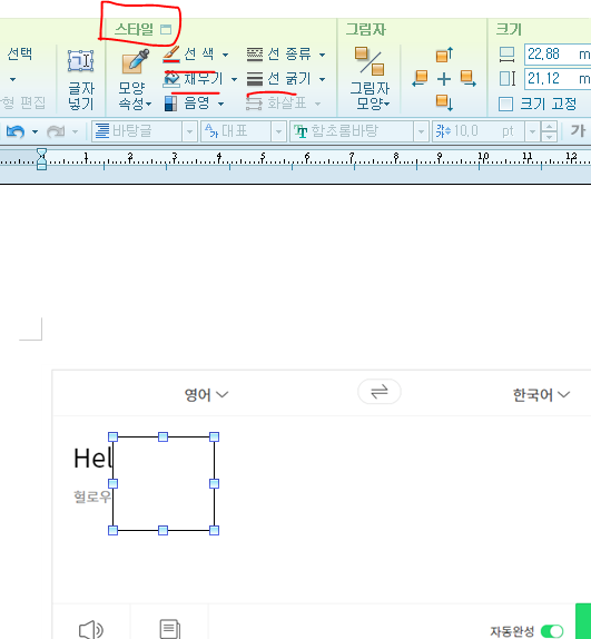 이번에 소개할 한글 문서(아래 한글) 작업에서 필수인 그림 개체 위에 도형 그리기 입니다.