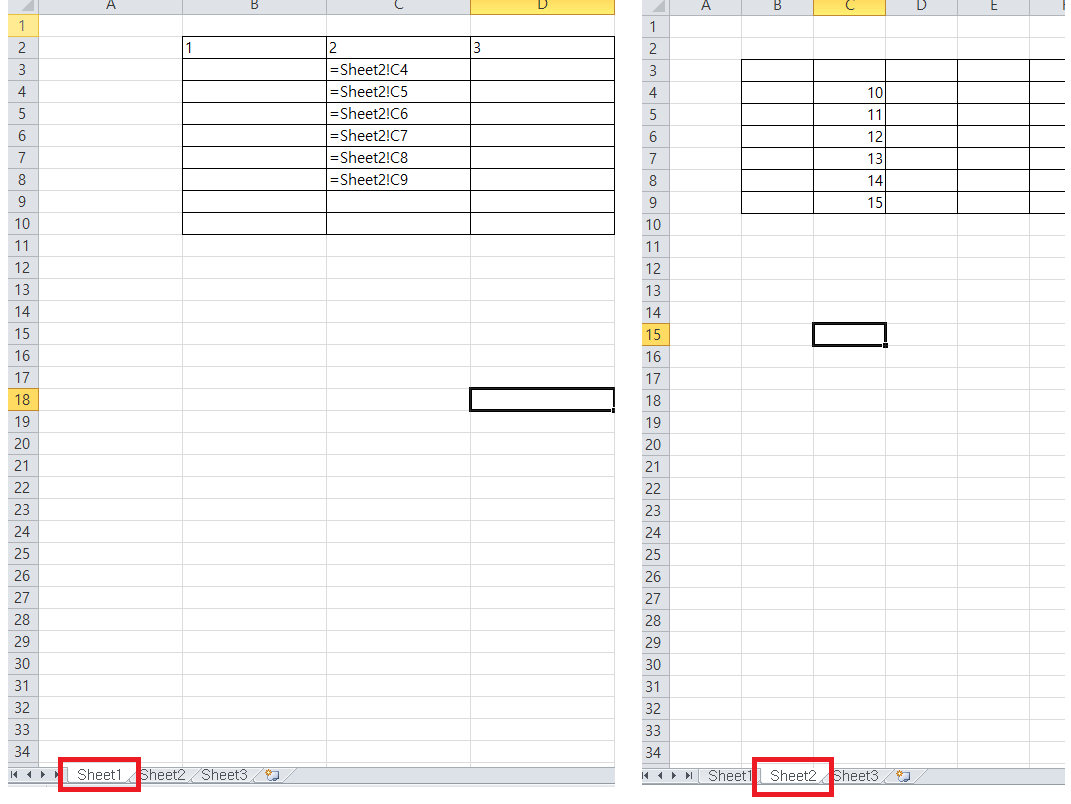 (Sheet1!C1, Sheet2!C2 이런 식으로)