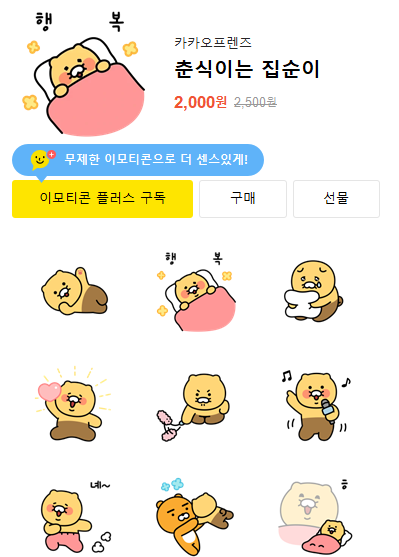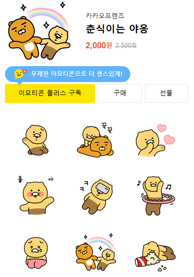 이모티콘 플러스 전용 상품인 춘식이는 프렌즈 ..