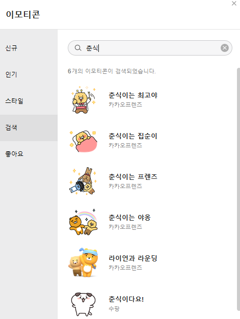 이모티콘은 뭐뭐 있는지 알아봅시다. (춘식이는 최고야 출시 기념으로요)