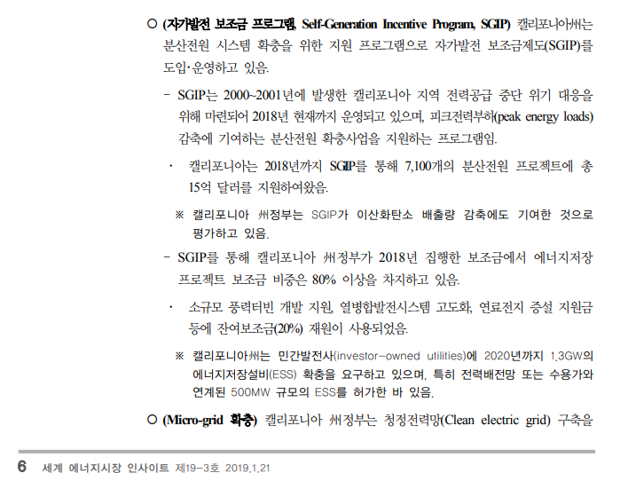 캘리포니아 주는 분산전원 시스템 확충을 위한 지원으로 본 프로그램을 도입하여 운영하고 있다고 설명하고 있다.