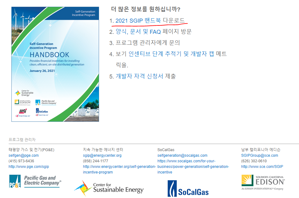 본 홈페이지에는 2021 SGIP 핸드북 다운로드 주소가 있어 정말 자세한 내용을 확인할 수 있다.