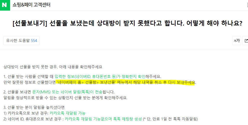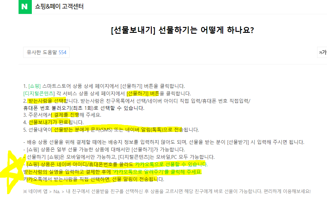 ↓ 네이버 선물하기 공식 설명 글 ↓