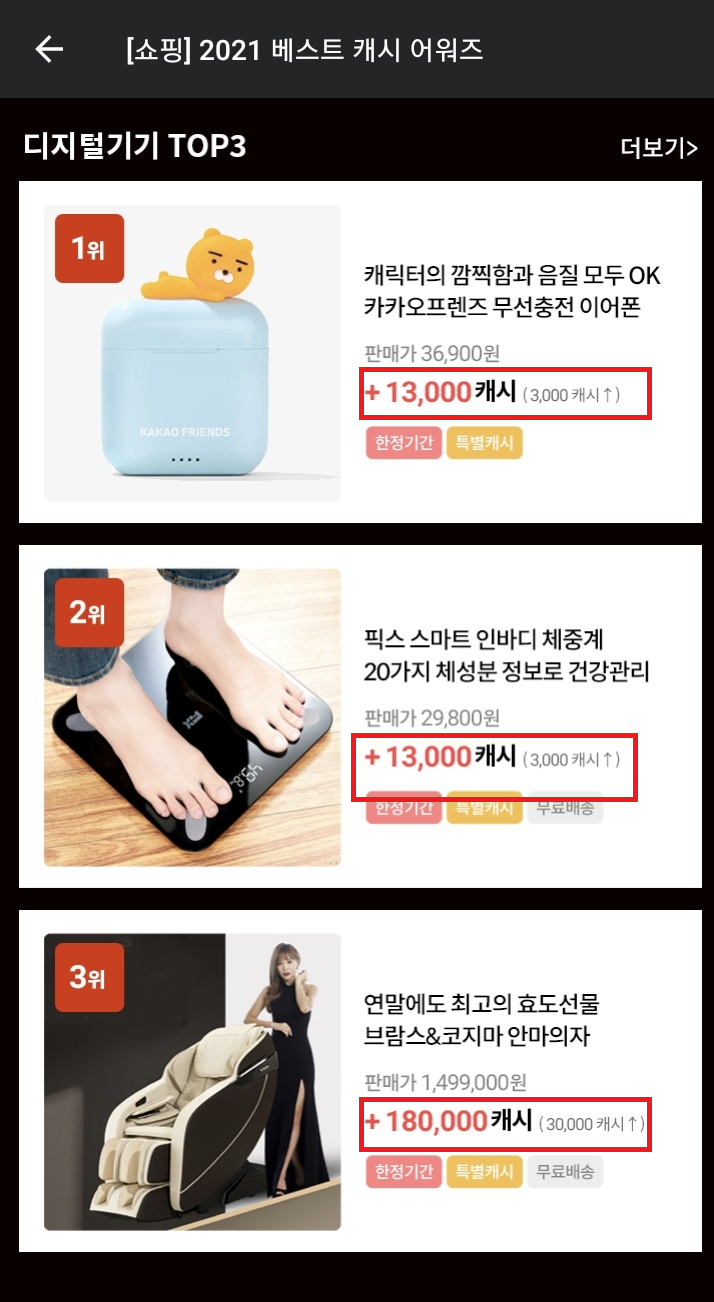 그 외 캐시(이벤트 참여, 코드 입력 등)들은 다 이벤트 캐시 항목으로 들어가며