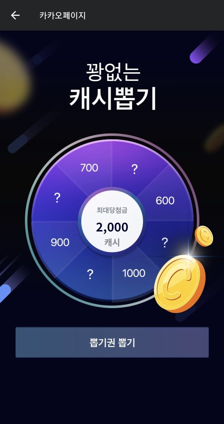 1-5. 이벤트 캐시 : 멜론 100원 프로모션으로 카카오페이지 만 캐시를 주거나, 캐시 사용하면 캐시백 해주는 등의 이벤트로 얻는 캐시. 출석하면 주는 캐시 이벤트(캐시 뽑기권을 지급함)도 있다.