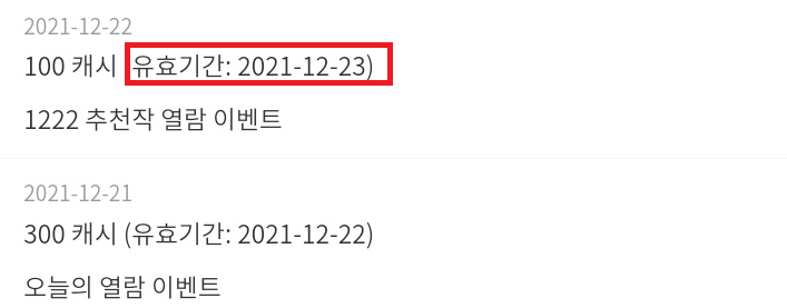 근데 유효기간이 캐시 지급 시에만 표시되어서 현재 남아 있는 캐시 각각에 대해 유효기간 확인이 불가능..