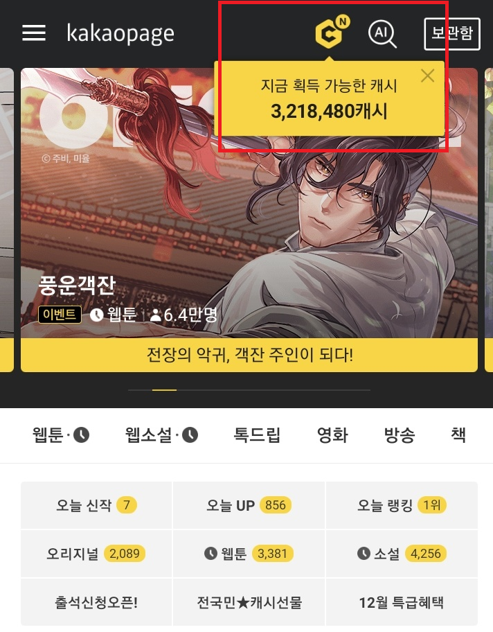 그래도 카카오페이지에서 기한이 임박한 캐시가 있다고 알림을 해주긴 하니까...