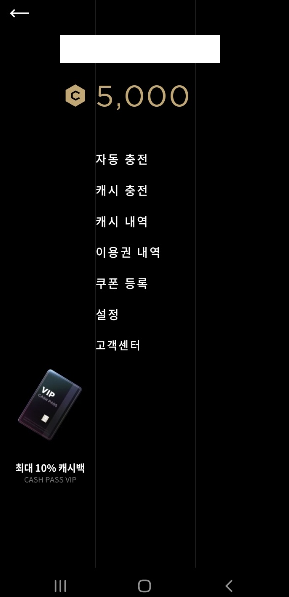 원래 있던 캐시는 다 없어지고 이벤트로 주는 5000캐시만 달랑있다.