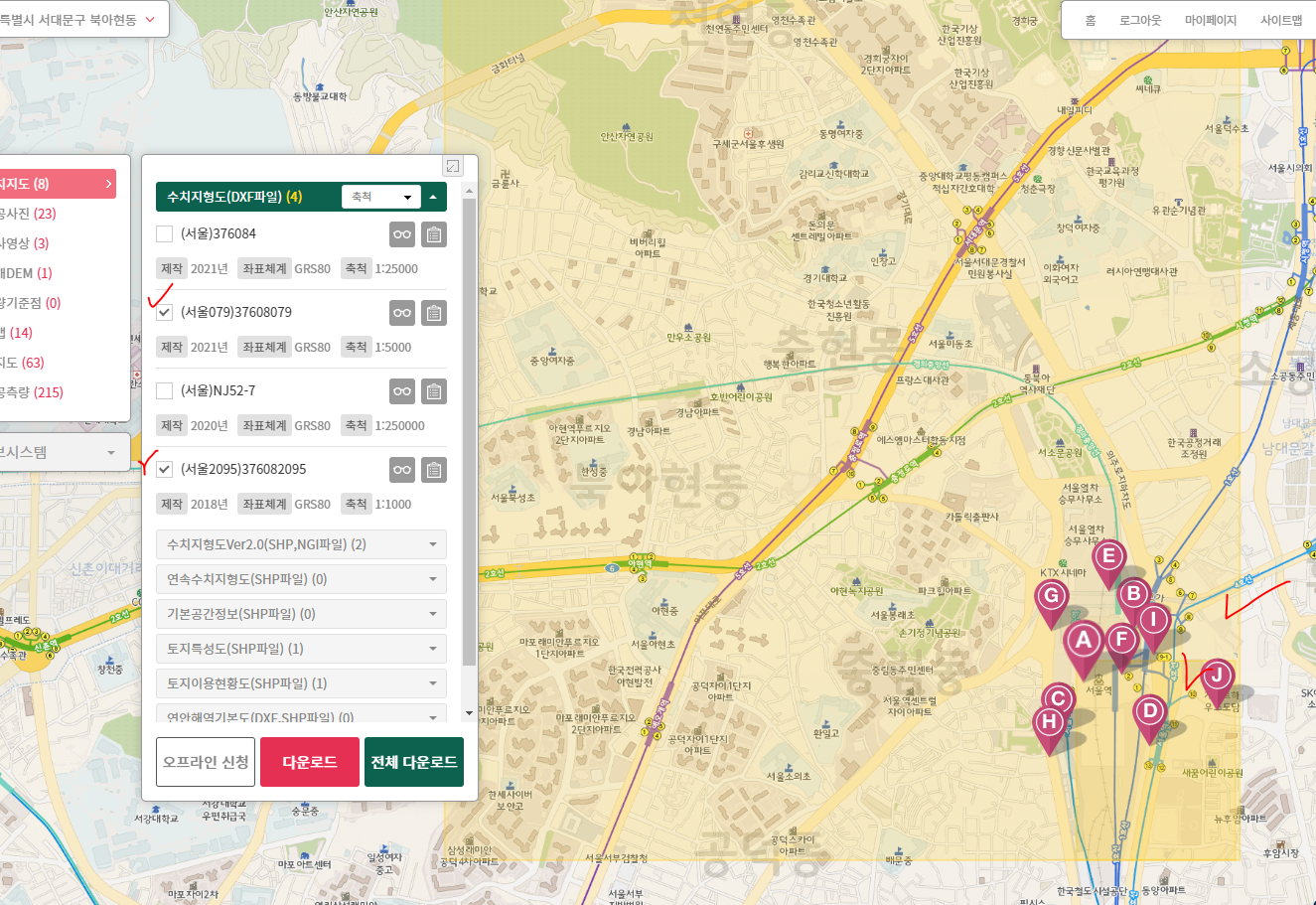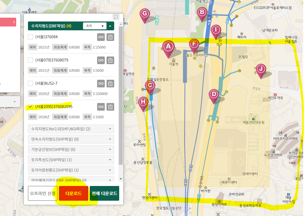 아무튼 원하시는 구역이 포함되시면 다운로드를 눌러주시면 돼요.