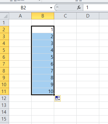 그 상태에서 10까지 드래그!