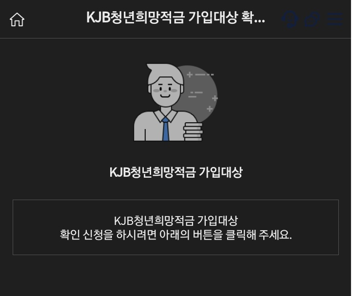 광주은행(KJB청년희망적금) 가입대상 확인신청 과정을 끝내면 위와 같은 화면이 떠요.