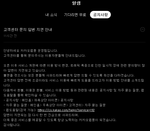 이건 뭐 다음웹툰 강제로 서비스종료하고 카카오웹툰으로 새로 차려놓은셈인데...