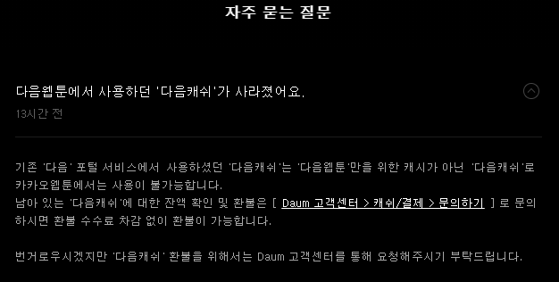 다음웹툰이 카카오웹툰으로 탈바꿈을 했는데... /+다음웹툰캐시 환불법