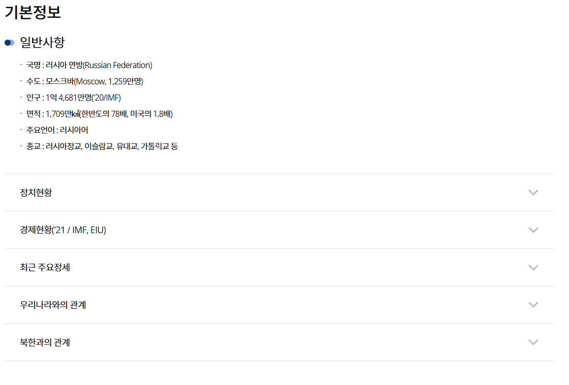 예시는 러시아지만 개발도상국들의 자료를 구할 수 있기 때문에 ODA 사업 진행하실 때 수원국 현황을 작성하신다면 유용하게 쓰실 수 있을 것입니다.