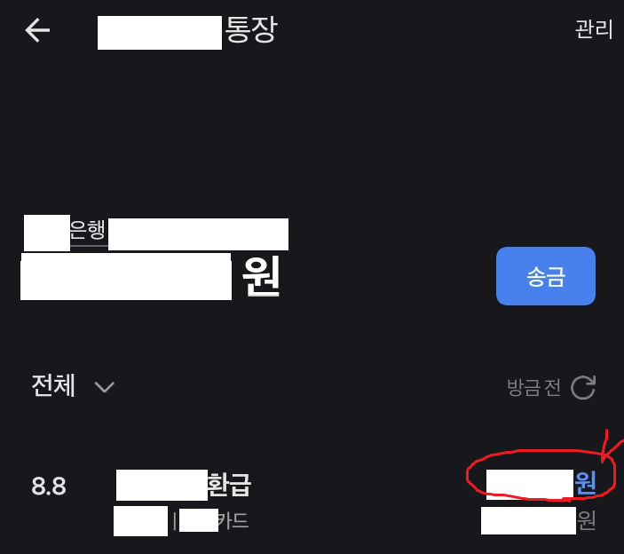 거기에 환불 받을 잔액 캐시 얼마인지 적고 몇 줄 되지 않았습니다.