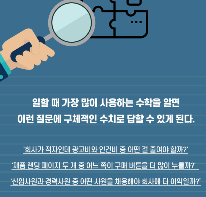 1. 제목 : 일할 때 가장 많이 써먹는 수학