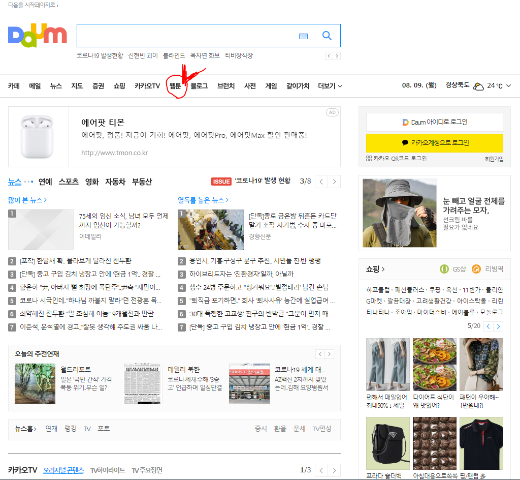 다음 홈페이지에서 바로 가고 싶으신 분들은