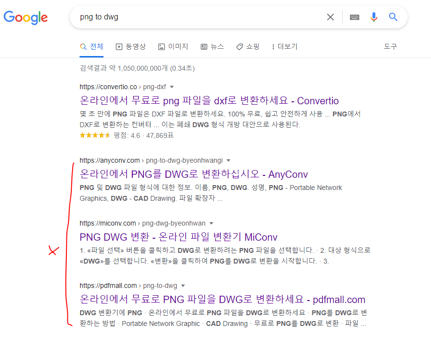 구글에 png to dwg라고 칩니다. (jpg 면 jpg to dwg, pdf 면 pdf to dwg. 근데 pdf는 오토캐드 내에서 변환해주는 게 있습니다.)
