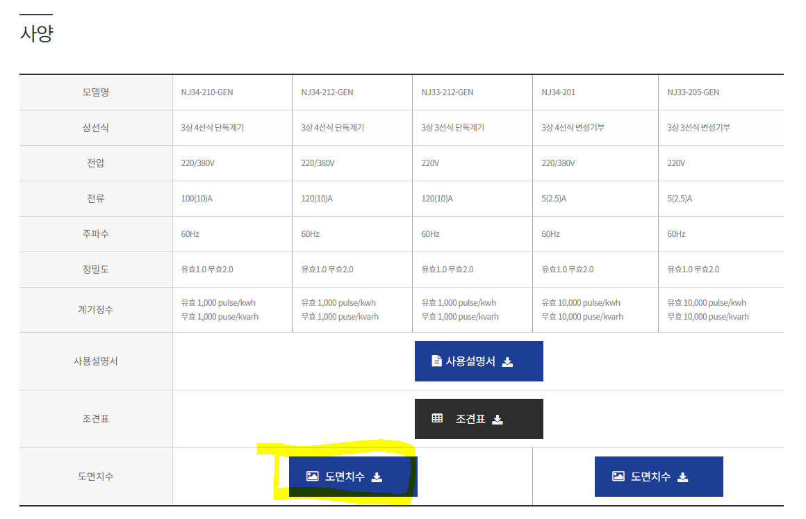 위 링크는 한전 전력량계 제품 상세 설명 페이지입니다.