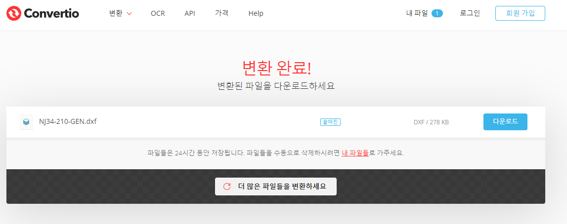 ㅜㅜ 변환됐다기에 다운로드하고 열면 '도면이 유효하지 않습니다' 뜨거나 그냥 에러가 납니다.