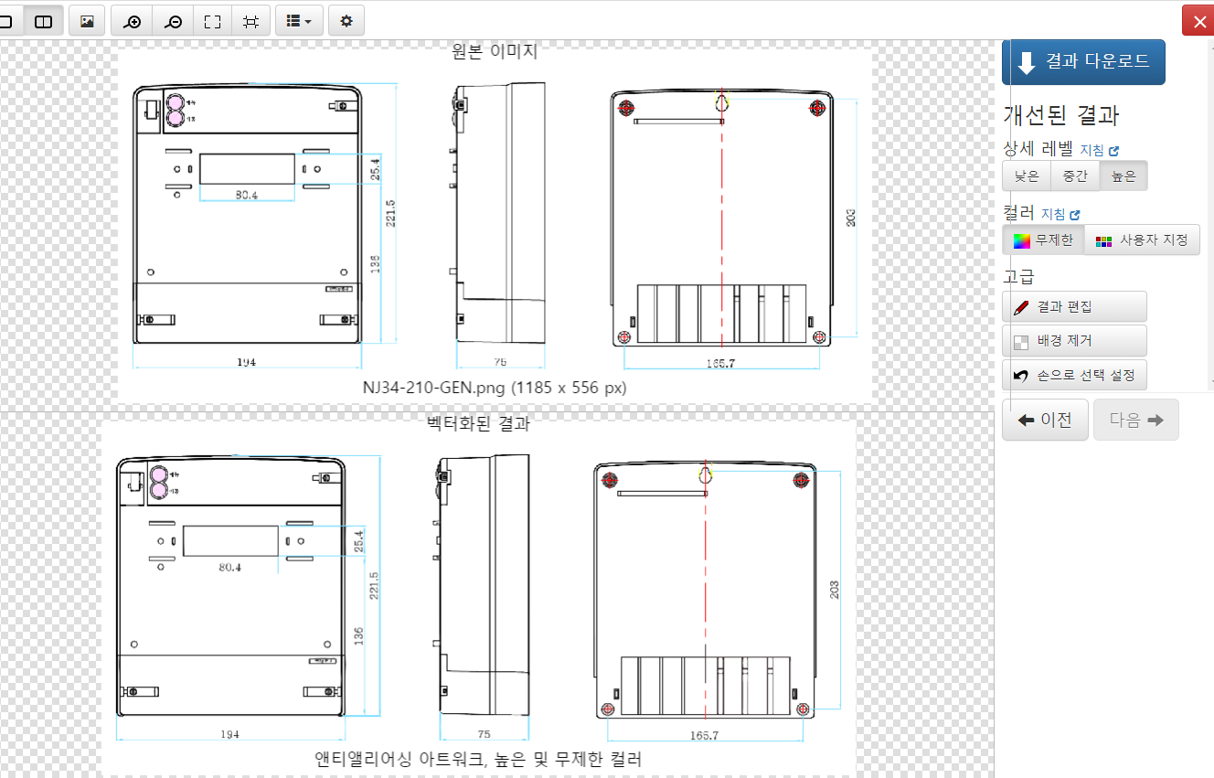 그래도 위 이미지는 화질이 좋아서 다른 도면 이미지 보다는 변환이 잘 될 거 같습니다.