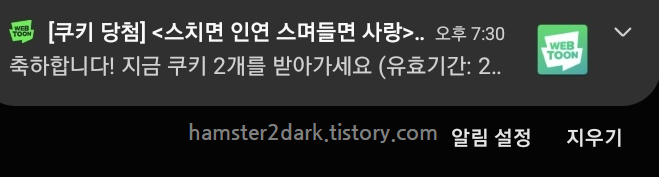 저는 이 이후에 다른 웹툰을 통해 추가적으로 쿠키를 받았습니다. (소개한 이벤트와 똑같은 방식)