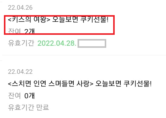 3. 며칠 뒤 쿠키 증정(100%) 시 수령하고 이틀 내로 사용하기