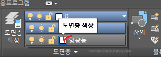 또는 기본 화면에서 도면층 구역에서 역삼각형 아이콘을 눌러서 색상 부분을 선택하여 변경할 수도 있습니다.