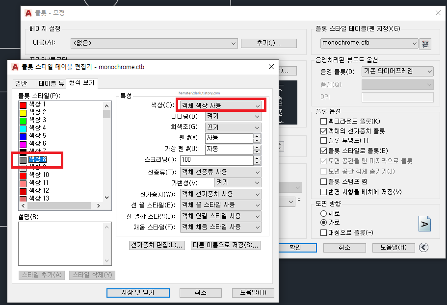 위 게시물에 인쇄 색상 설정 부분도 간단히 설명해놓았으니 확인하면 되겠습니다.