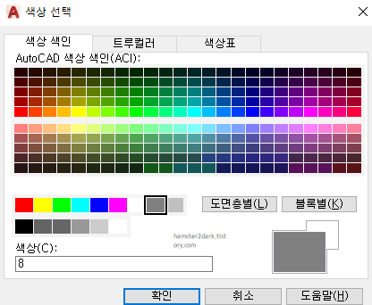 색상은 색인 중에서 하나 골랐는데요. 색인 8(짙은 회색)을 선택하였습니다.