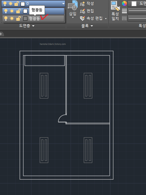 회색으로 만들기 전에 형광등만 따로 새로운 도면층을 설정해줄 것입니다.