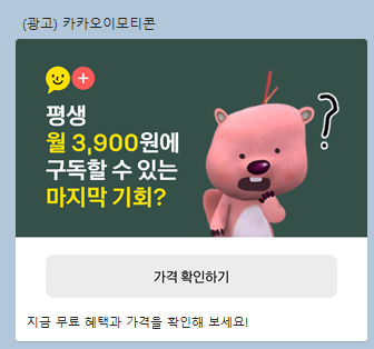 이모티콘 플러스는 달달에 4900원(할인가 3900)이라서 좀 부담돼요. (매달 결제라는 사실이~)