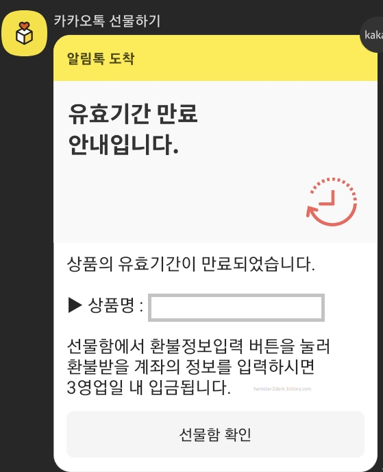 참고로 카카오톡 선물하기 메시지를 통해서 유효기간 만료 알림 메시지가 옵니다.