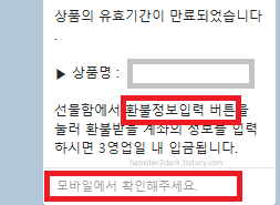 참고로 모바일에서만 메시지에서 환불 정보 입력 버튼으로 바로 안내 되니 PC카톡은 불가능합니다. ㅜㅜ