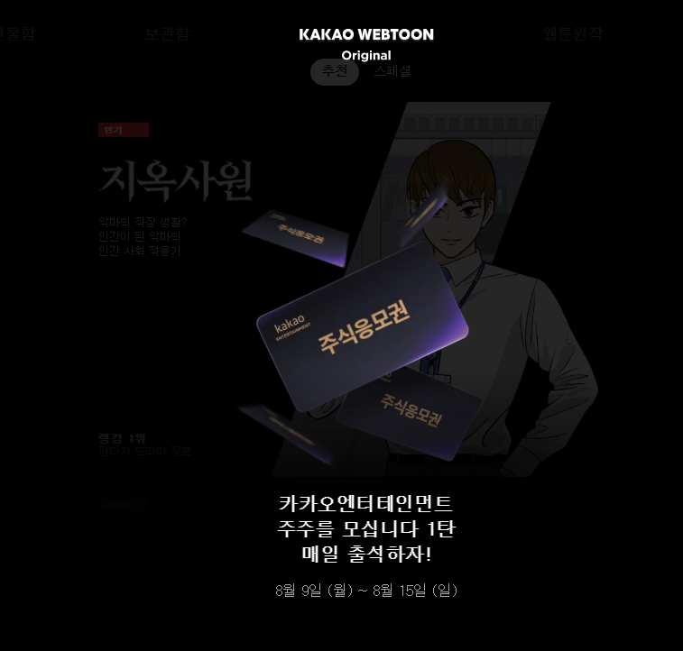 슬슬 카카오 웹툰이라 불러야 될 거 같습니다 ㅜㅜ