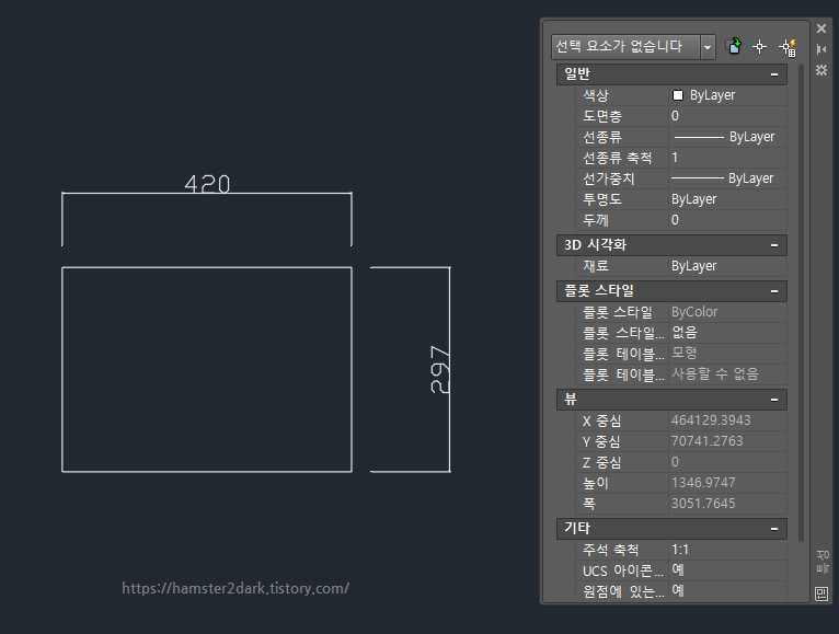 다르게 표현하면 A3 인쇄용지에 출력하기 위해 본 크기로 도면 크기 설정하는 거라고도 볼 수 있겠네요.