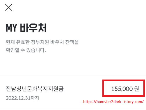 위 사진은 지원금 사용이 성공적으로 되어서 잔액이 줄어든 모습입니다.