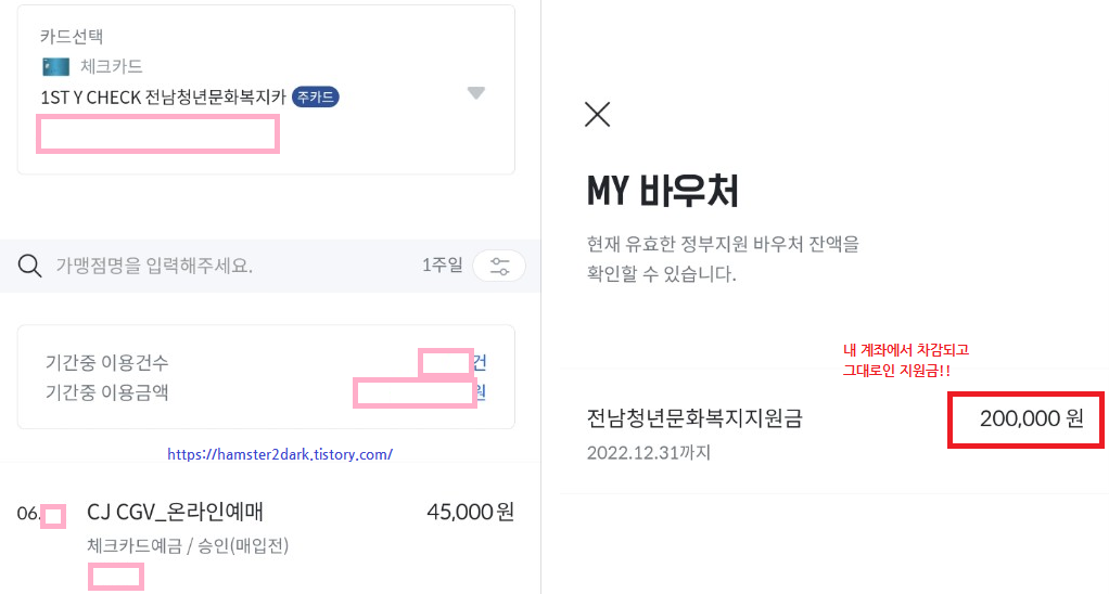 추가적으로 CGV에서 광주은행 전남 청년문화복지카드로 결제할 때요.