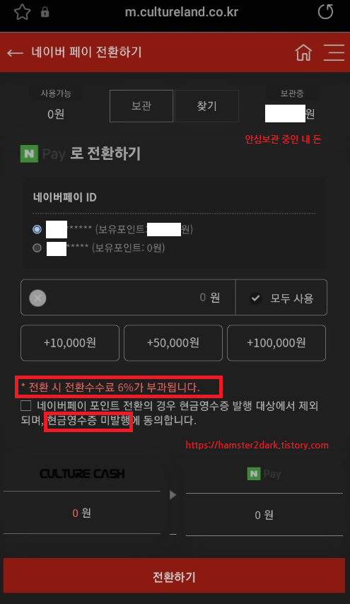 컬쳐캐시 -> 네이버 포인트 전환 시 유의사항