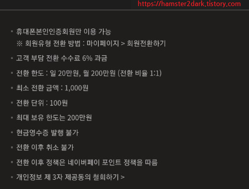 - 최대 보유 한도 200만 원, 현금 영수증 X, 전환 이후 취소 불가 등...