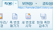 그러면 주황색 글씨가 나타나는데 그 중에 '쪽 번호 위치'라는 글씨를 볼 수 있을 겁니다.