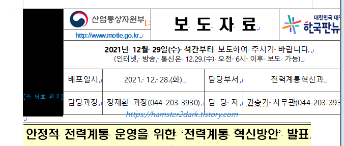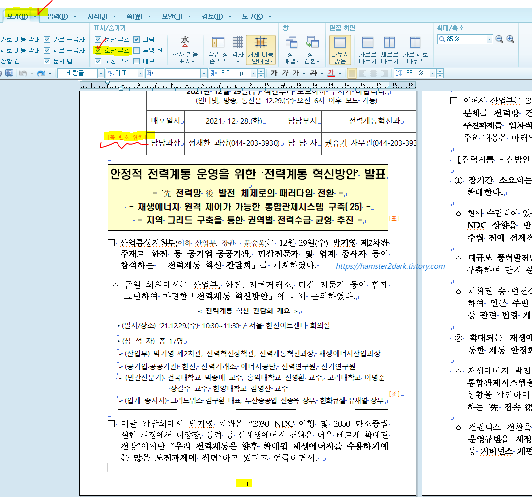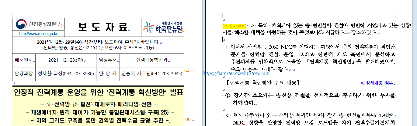 본 게시글에서 예시로 산업통상자원부에서 보도자료로 올린 한글 파일을 사용했습니다.