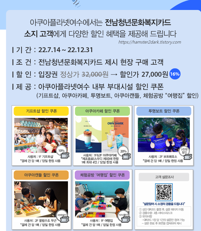 그 외에도 아쿠아플라넷 여수 내부 부대시설 할인 쿠폰도 주는데...