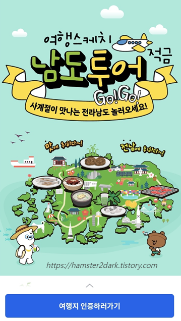 여행 인증은 여행지 6곳에 가셔서 위치 인증만 하면 되는 구조고요.
