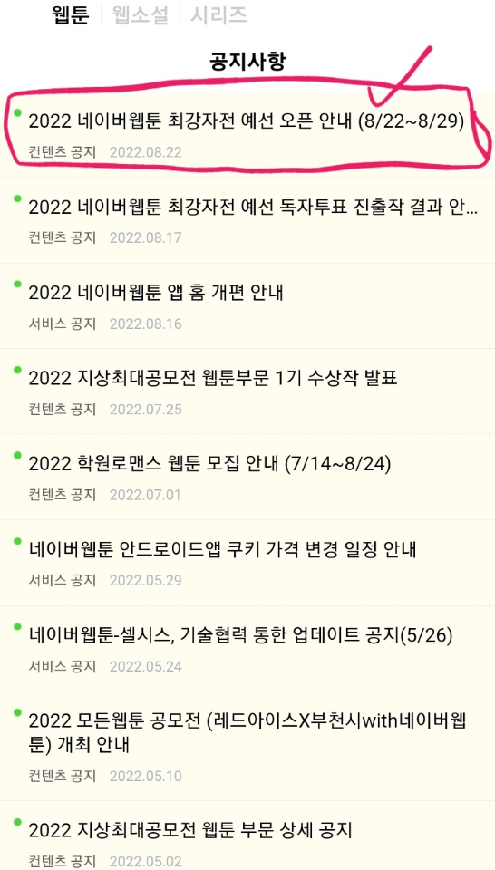 2022.08.24 - [웹툰 매일 봄] - 네이버 웹툰 모바일/PC 홈 개편 & 최강자전 예선 OPEN