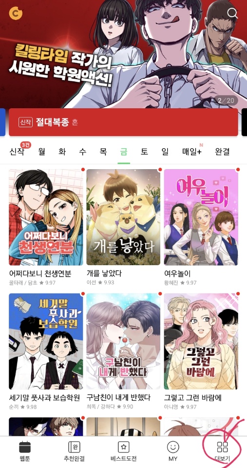 그러면 네이버 웹툰 어플에서 최강자전 보는 법 시작합니다~