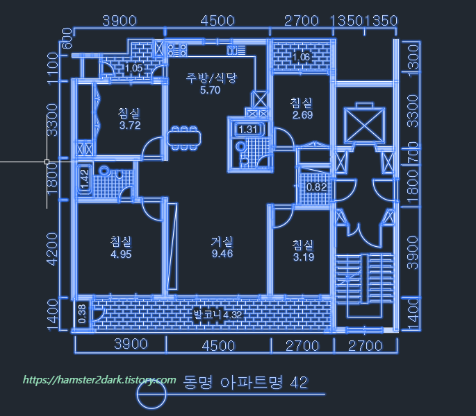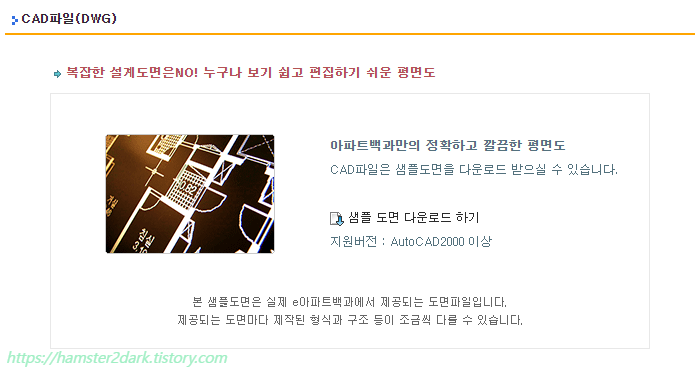 예시로는 아파트 백과 홈페이지에서 다운로드 받은 아파트 샘플 도면을 사용했습니다.